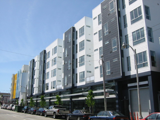 This five-story affordable complex combines apartments and modern single-occupancy studios with a wealth of community spaces, including an on-site daycare, a full service, organic grocery store and commercial spaces.