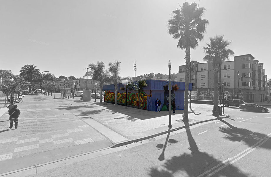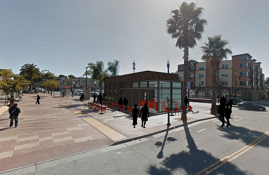 Bishop's Burger Spot was conceived as a sort of jewel box. At only 750 sf, the details are key. Located in the Bayview at a strategic corner of Mendell Plaza, the new building will anchor and activate the plaza, giving it program and function. The building was designed to function as a social node and an extension of the plaza, with its main entrance and active facade facing, and opening up to, the plaza.