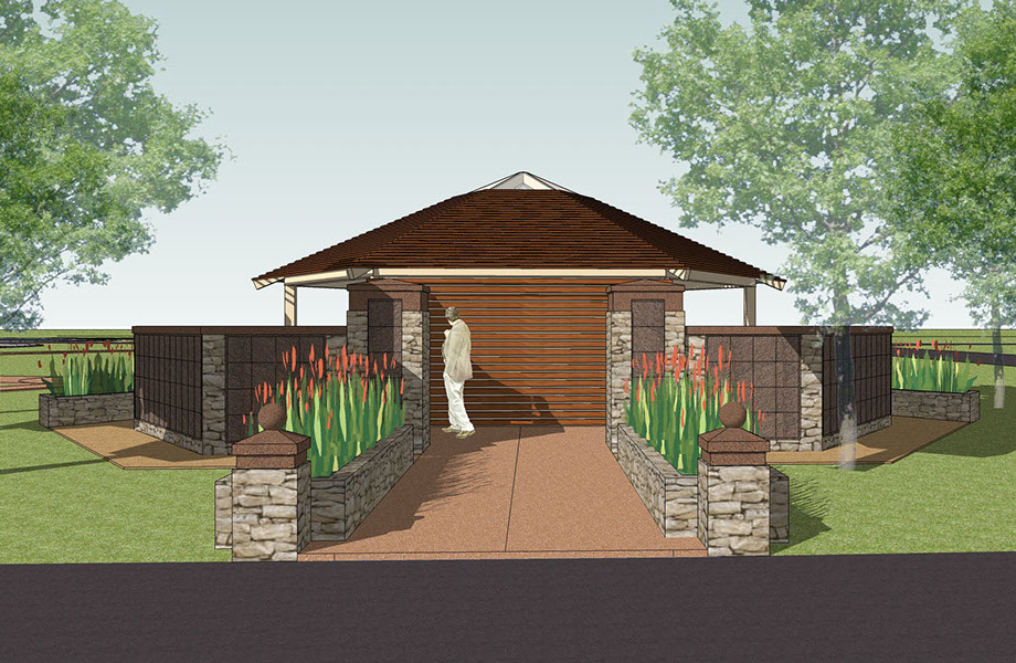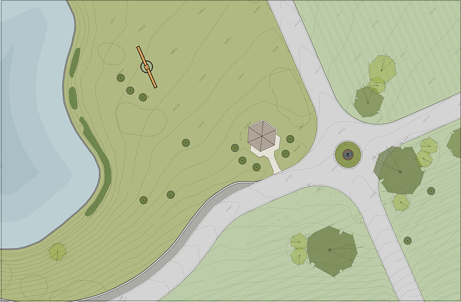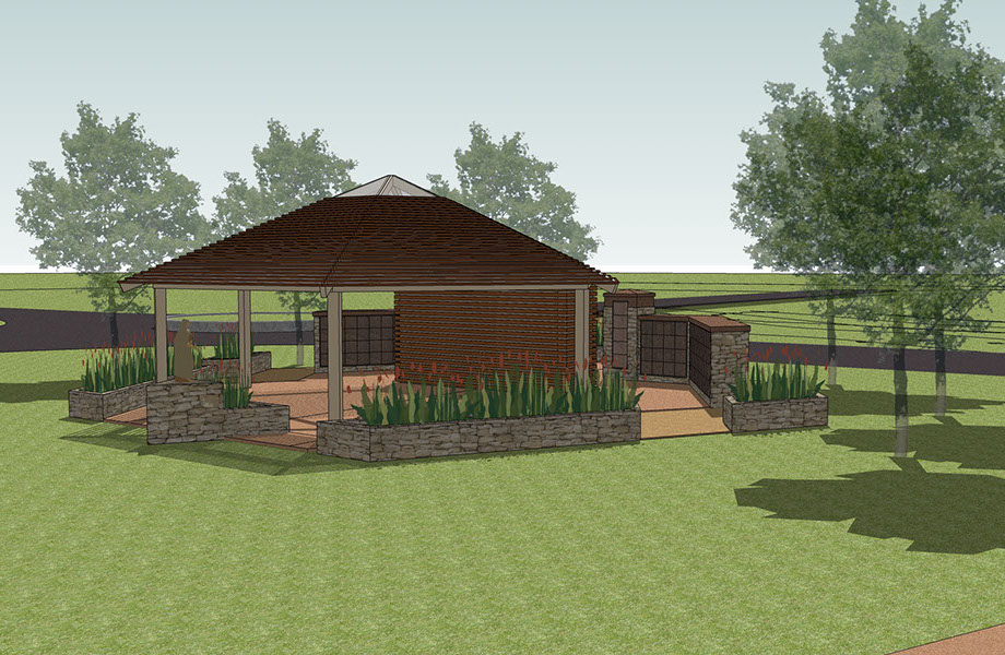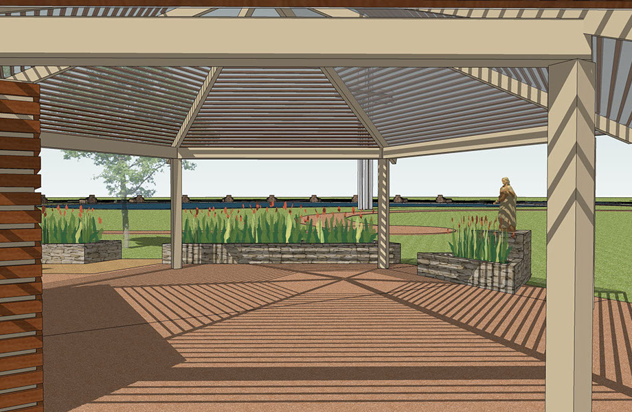 For the Lakeside Memorial Gardens, G7A was asked to reuse the cemetery's existing lakeside gazebo and transform it into a pleasant, reflective memorial space.
