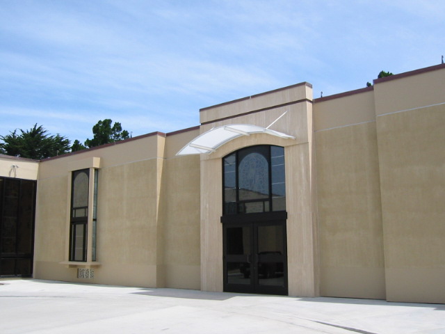 The new buildings are offset by a new memorial garden with a fountain, decomposed granite paths, and in-ground cremains with granite memorial plaques.