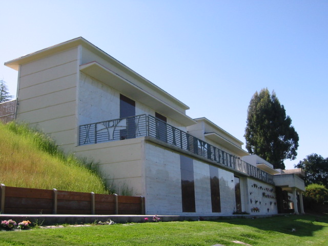 This new garden crypt development is located on a hilly site in San Rafael. To accomodate for the grade change, the buildings are terraced, creating two viewing levels.