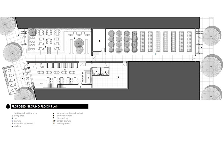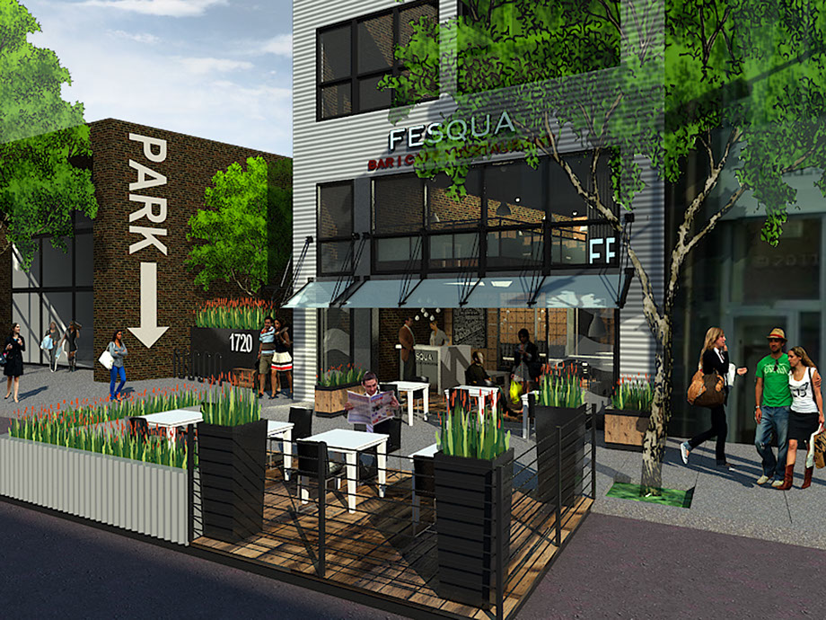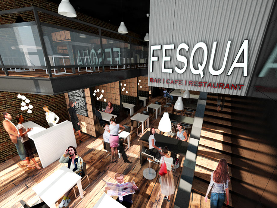 The small footprint of the existing restaurant will augmented with the addition of a mezzanine level and additional seating. Interior finishes are meant to reflect the themes of “fresh” and “water”, each of which were central concepts in the overall branding of the cafe and combine to form the name Fesqua.