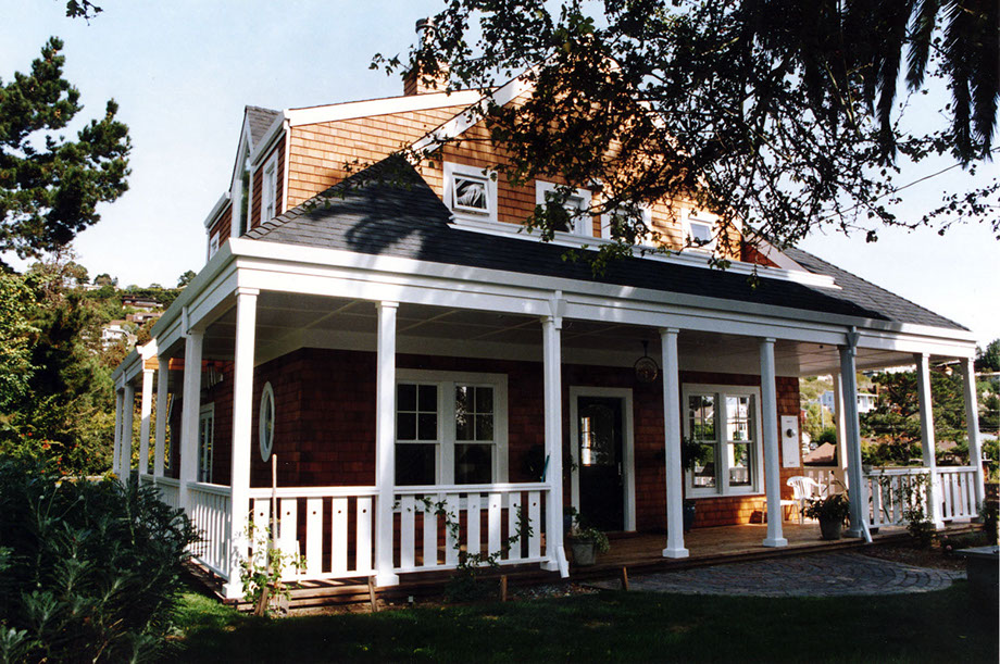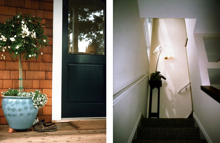 Historically, the house had only one floor of living space, with a high attic space above. The Family wanted to create additional living space within the existing 1,100 SF footprint without increasing the building’s impact on the site or loss of character. This was accomplished by carving out new living space from the existing attic by adding dormers to increase the ceiling height for new rooms and outdoor living space at this upper level.