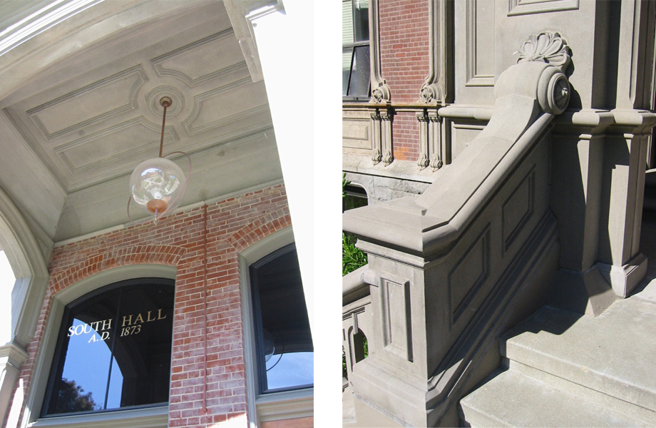 The East Entry Porch was reconstructed based on research of the original design and included detailed replication of the original ornamentation, restoration of the formerly hidden original doors, new period lighting, and “Osa,” the Bear.